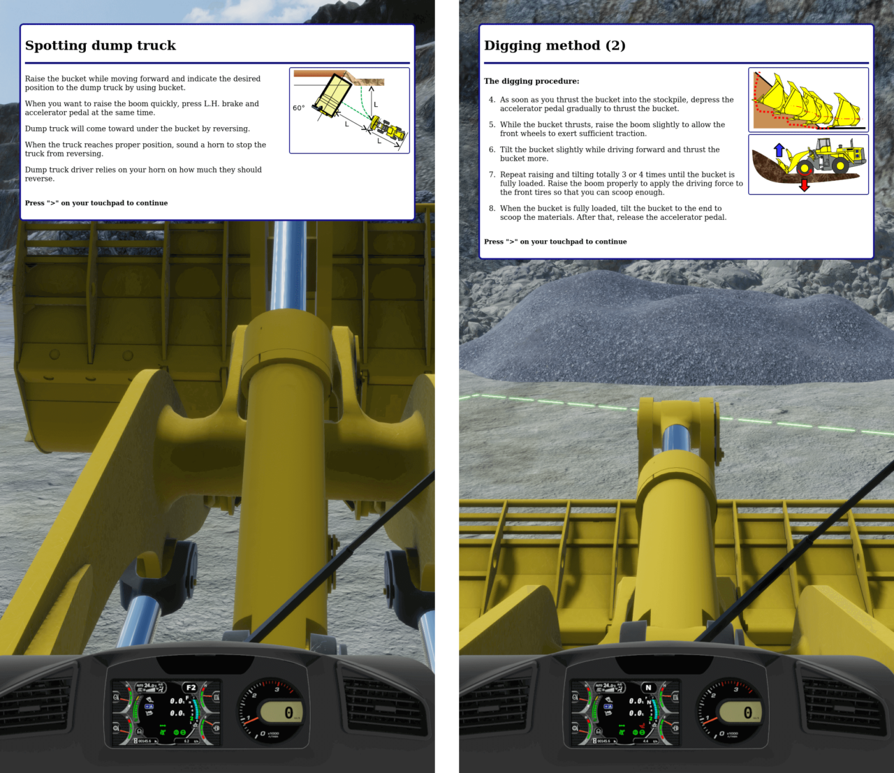 Please contact us if you are interested in a demo of the Wheel Loader module. The simulators are available at multiple Komatsu locations and if not available close to your location, a web demo could be set up upon request.